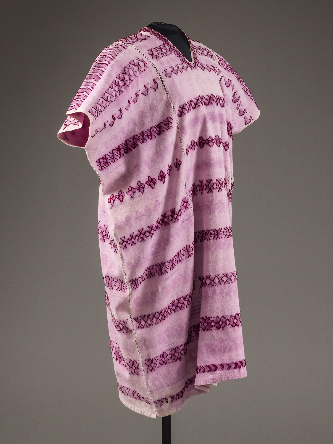 back strap loomed snail dyed cotton in three lengths hand stitched together / algodón teñido con caracol púrpura trabajado en tres partes en telar manual y cosidos a mano