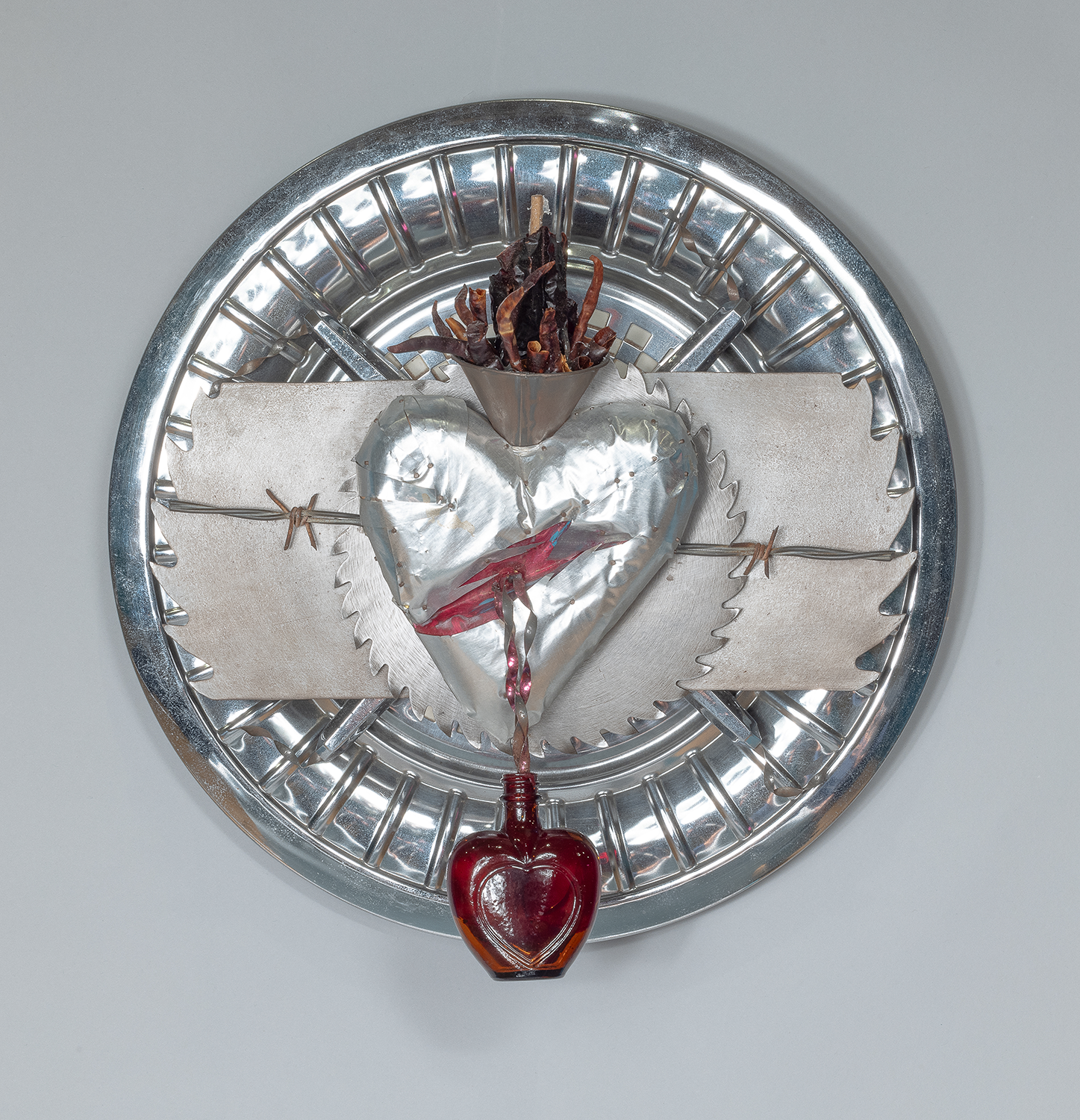 hubcap and mixed media / llanta tapacubos y técnica mixta